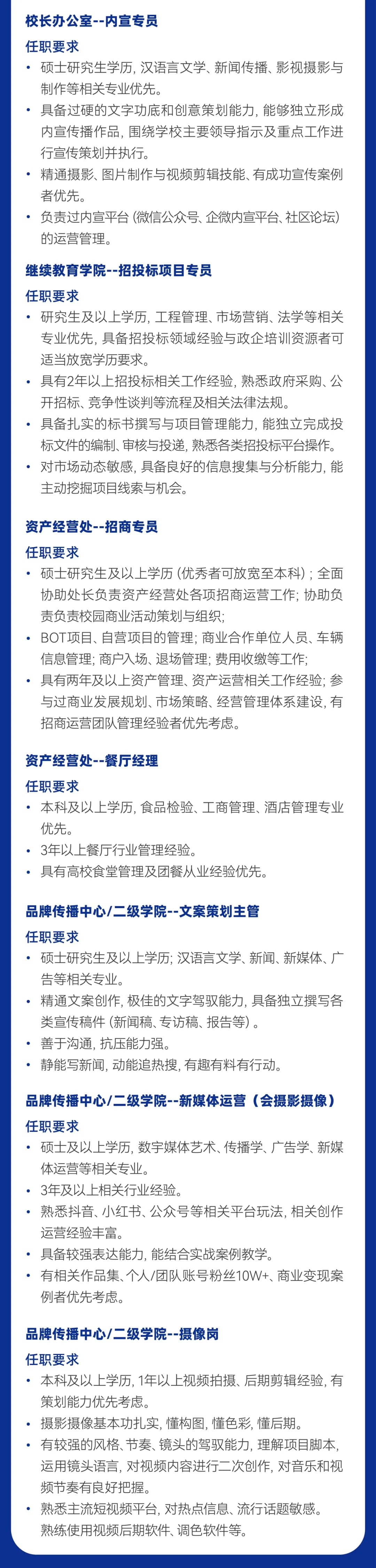 简历抄送至:gccrcw@163.com,邮件标题:高层次人才网+姓名 +专业+学历+职 称+应聘岗位+毕业院校)相关人才可联系赵老师VX:13717897409,更多招聘信息请添加客服赵老师微信号码:13717897409;QQ博士9群:715434786,QQ硕士13群:1063455749;